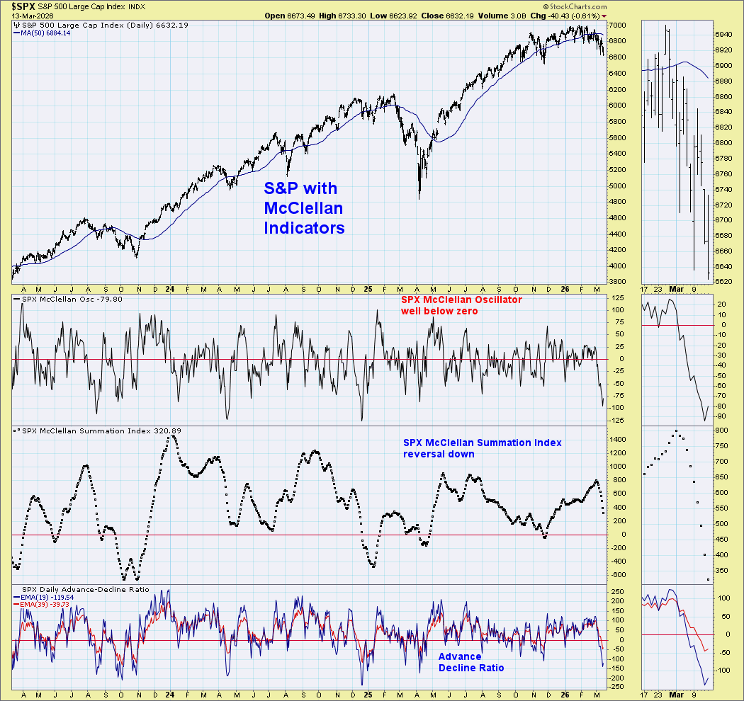 The S&P with the McClellan Oscillator, Summation Index, and advance‑decline lines are all weakening. This divergence between index price and participation often occurs late in market cycles when leadership narrows to a small group of mega‑cap stocks.