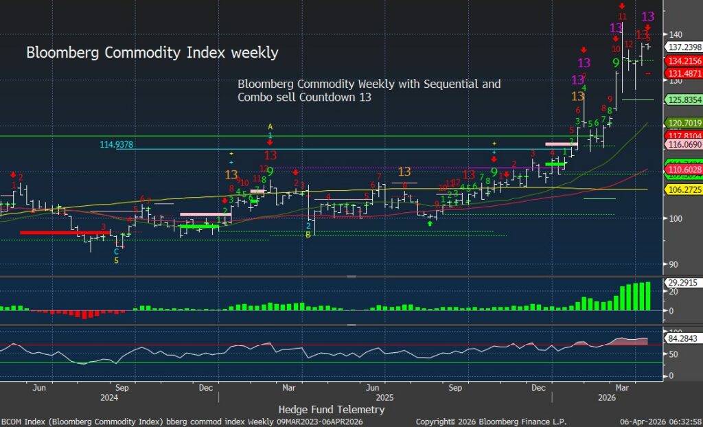 - Commodities + crude sentiment extreme → crowded inflation trade