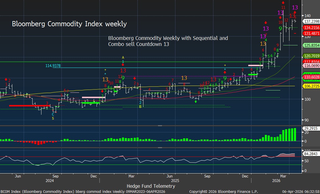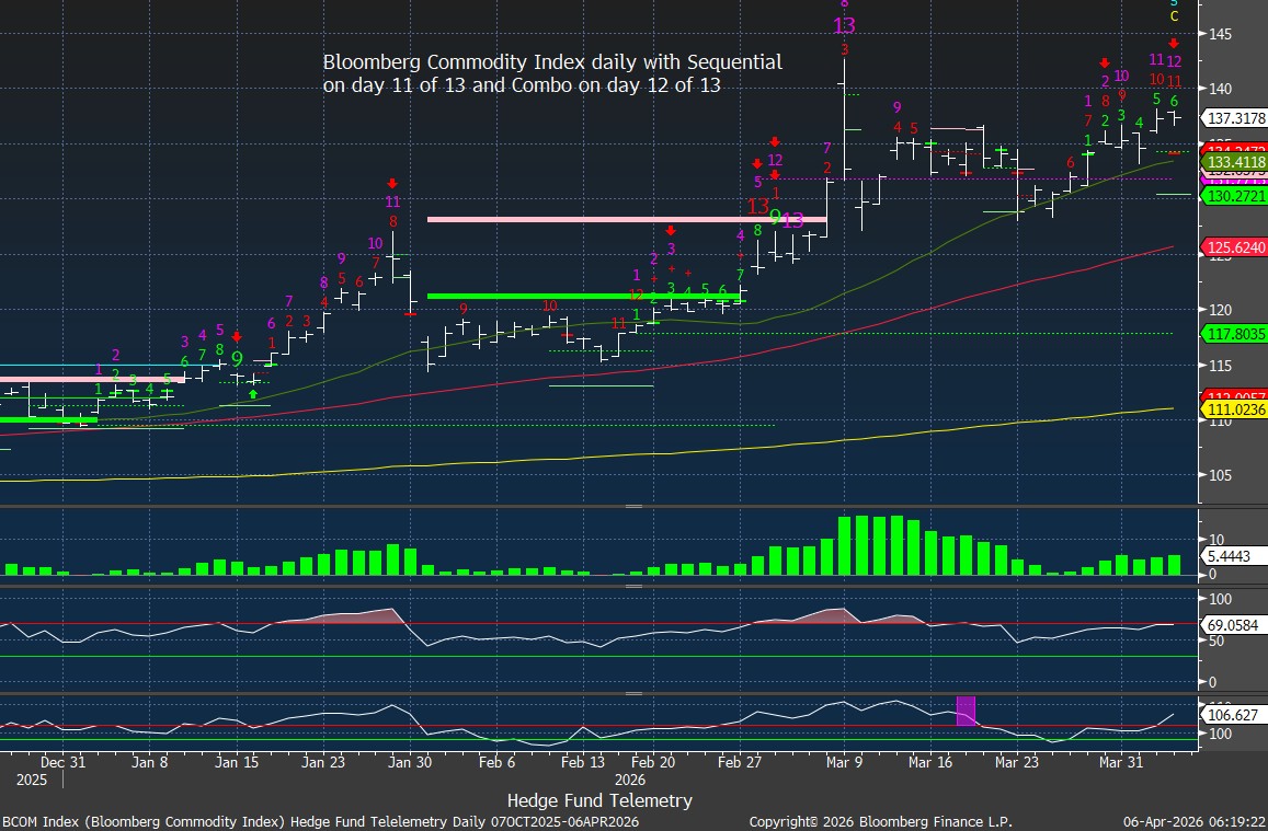 The most important intermediate-term DeMark signals here are the weekly sell Countdown 13s / Combo 13s in XLK, XLC, XLE, and XLF. That tells you a lot of the prior leadership has already entered an exhaustion phase, even if some of those sectors are still technically above their longer-term trend lines. Meanwhile, XLY’s buy Setup 9 is the only real tactical countertrend stabilization signal in the group. Risk of continuation lower with XLY negates buy Setup 9 with new Sequential Countdown starting.