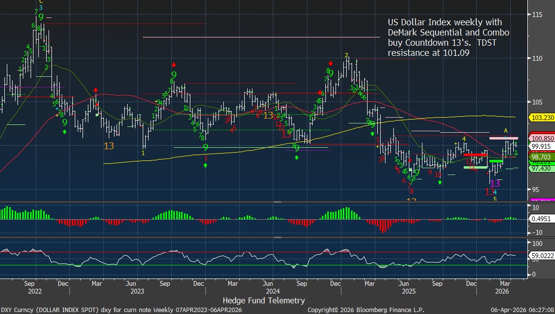 US Dollar Index weekly had recent DeMark buy Countdown 13’s